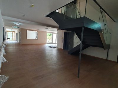3/2022 – 5/2022: Zügig konnte das neu errichtete Pflegeheim mit Hospiz und Frauenhaus in Germering bei München durchgereinigt werden. Planmäßig gab es nur eine Nachreinigung der Baustelle mit 6 Wochen Abstand und eine Zwischenreinigung für die Eröffnungsfeier. Wie oft auch schon bei so eher kleinen Bauvorhaben wie diesem (ca. 5.000 m² Grundfläche zum baureinigen) waren hier die neuen Glasscheiben durch die Bauzeit und dem vorherschendem kalkhaltigem Bauklima stark verkalkt und mussten speziell gereinigt werden.