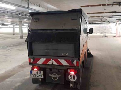 7/2019: Die zweigeschoßige Tiefgarage in der Grafingerstraße in München Haidhausen wurde separat gekehrt: im 1. UG konnte unsere Straßenkehrmaschine die Flächen abkehren. Im 2. UG war aus diversen Gründen Handarbeit beauftragt worden.